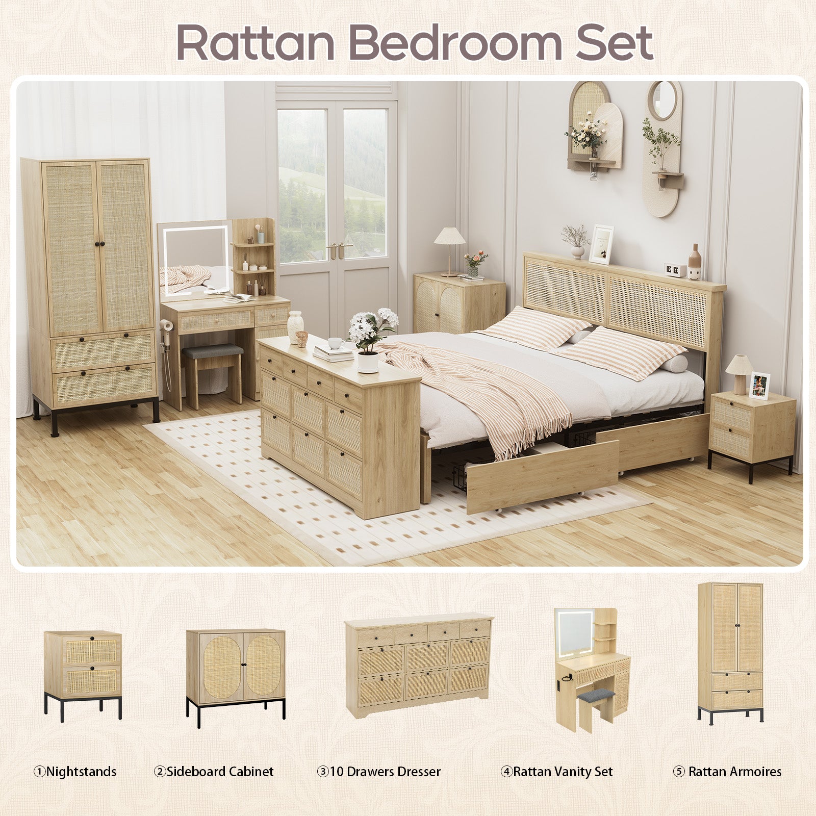【Stylish and Elegant】The storage bed frame with headboard features a breathable and lightweight hand-woven natural rattan design that adds a touch of elegance and blends seamlessly with various furniture styles.