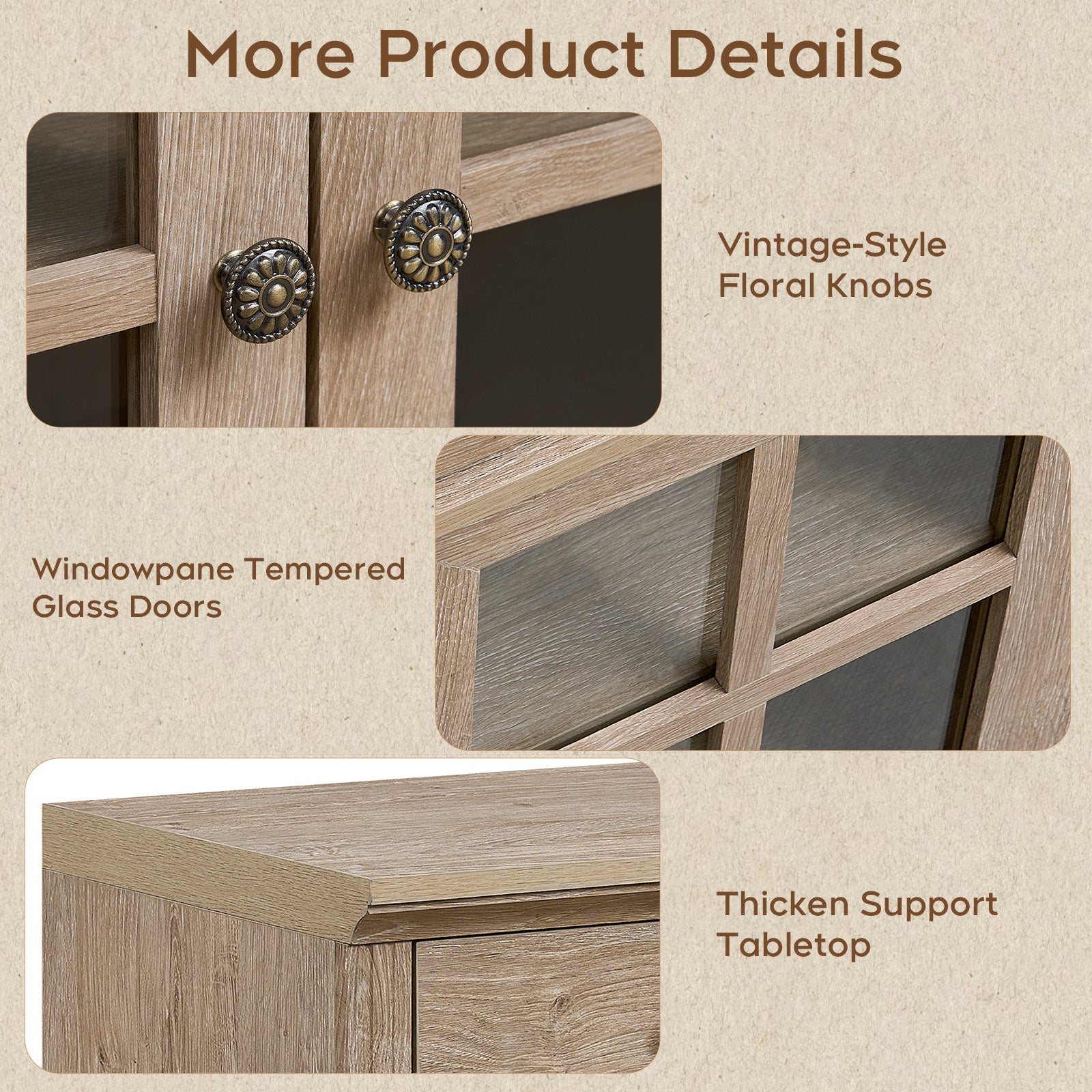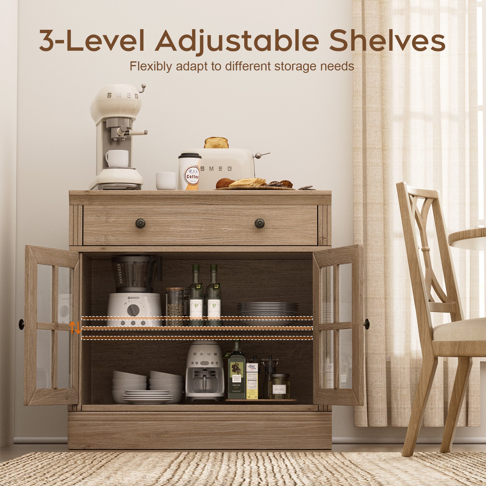 Brafabhome 31.5"W Sideboard Cabinet with Drawer & Glass Doors, Farmhouse Buffet Storage Credenza with Adjustable Shelf, Modern Coffee Bar Console for Living Room Dining Room | Light Oak