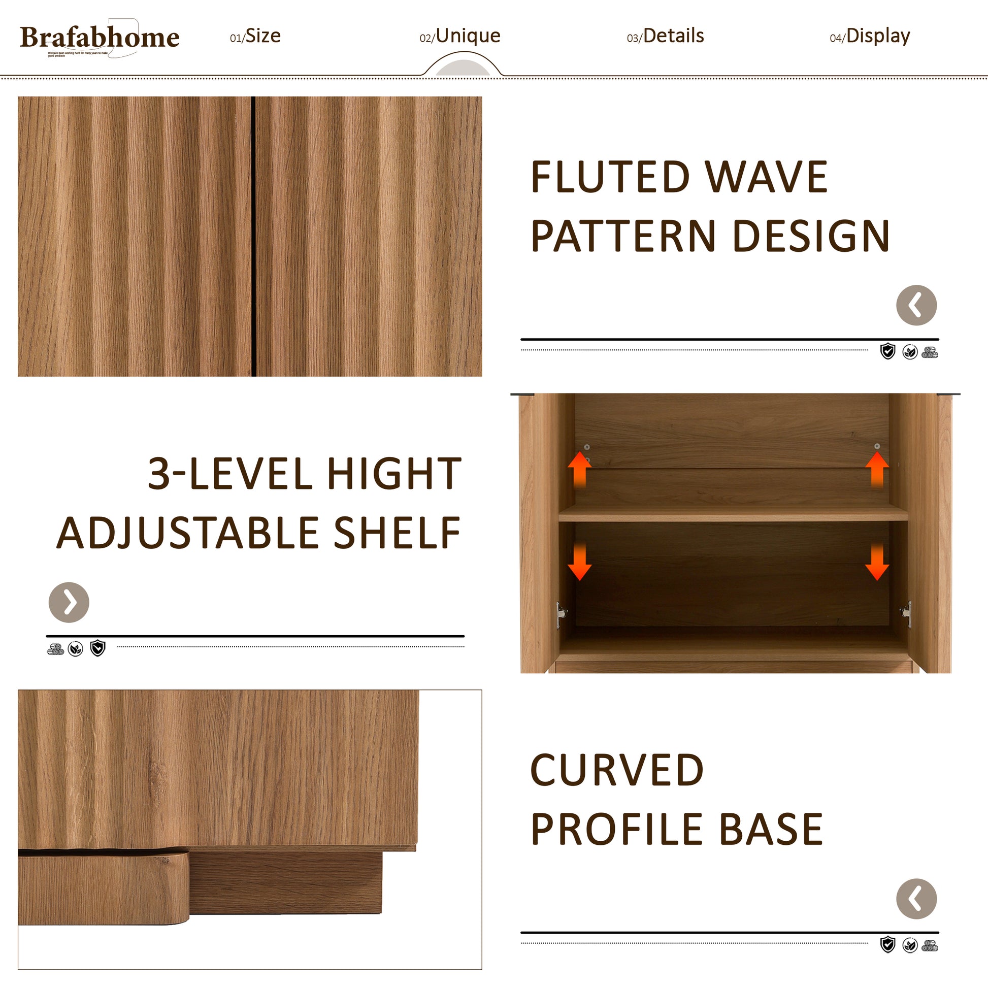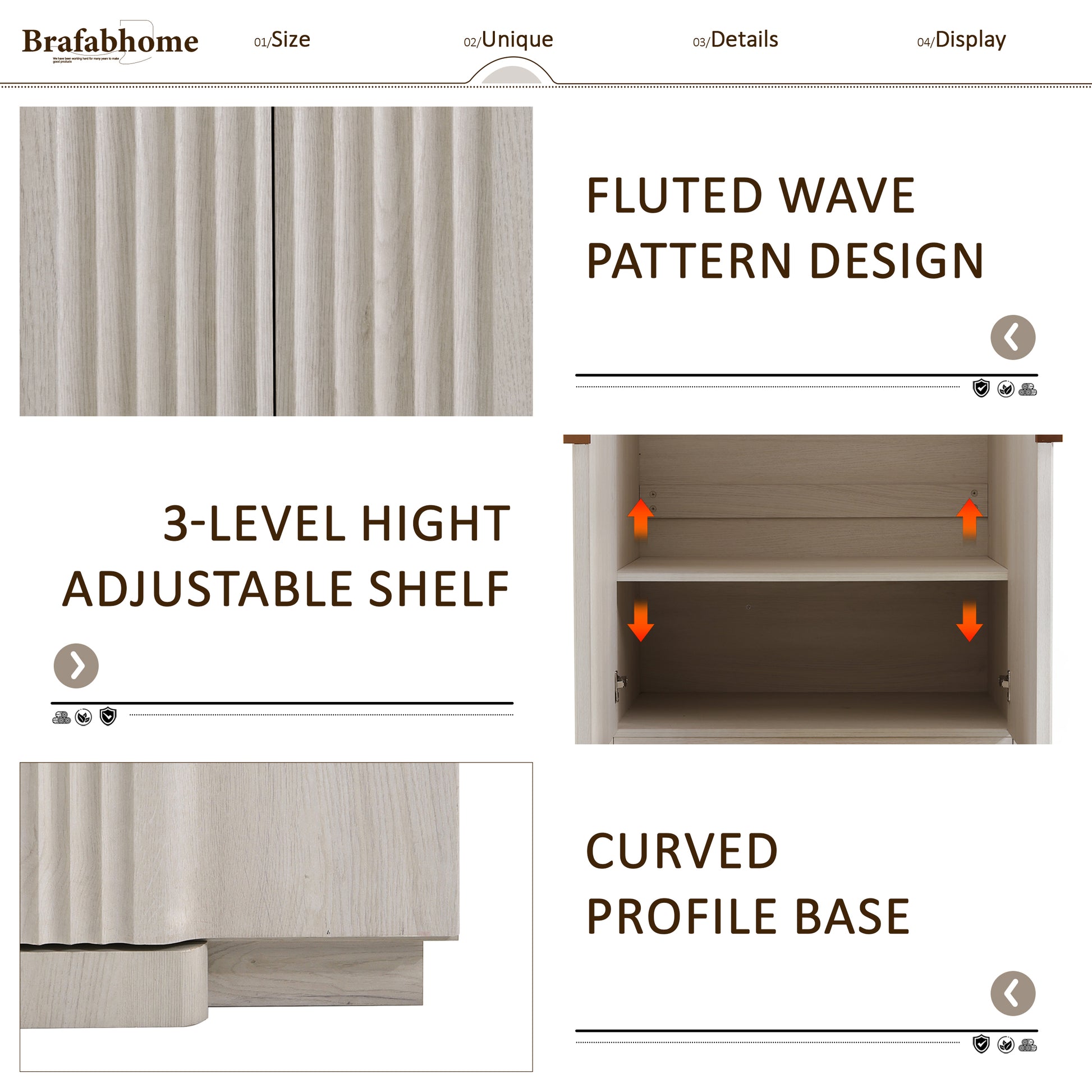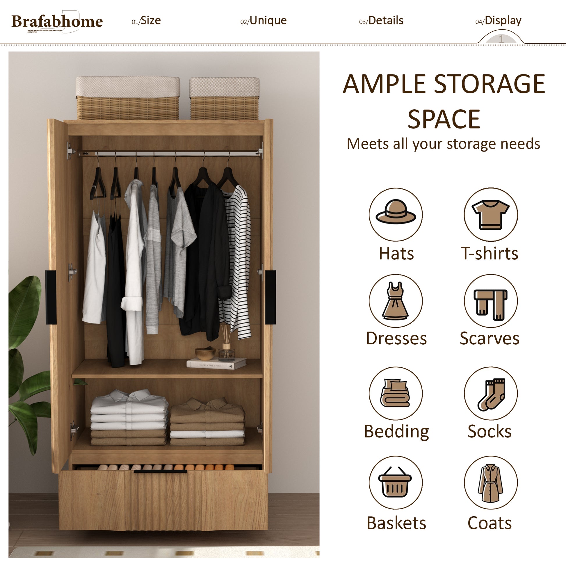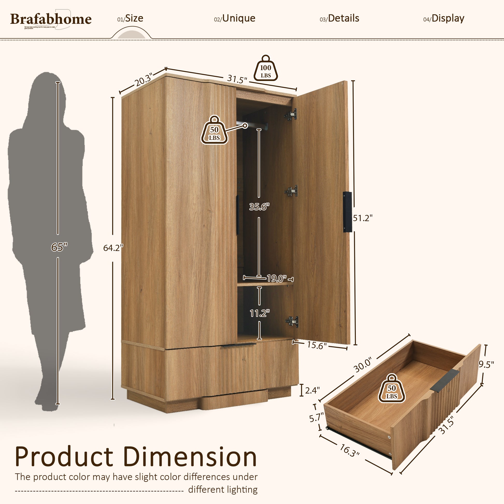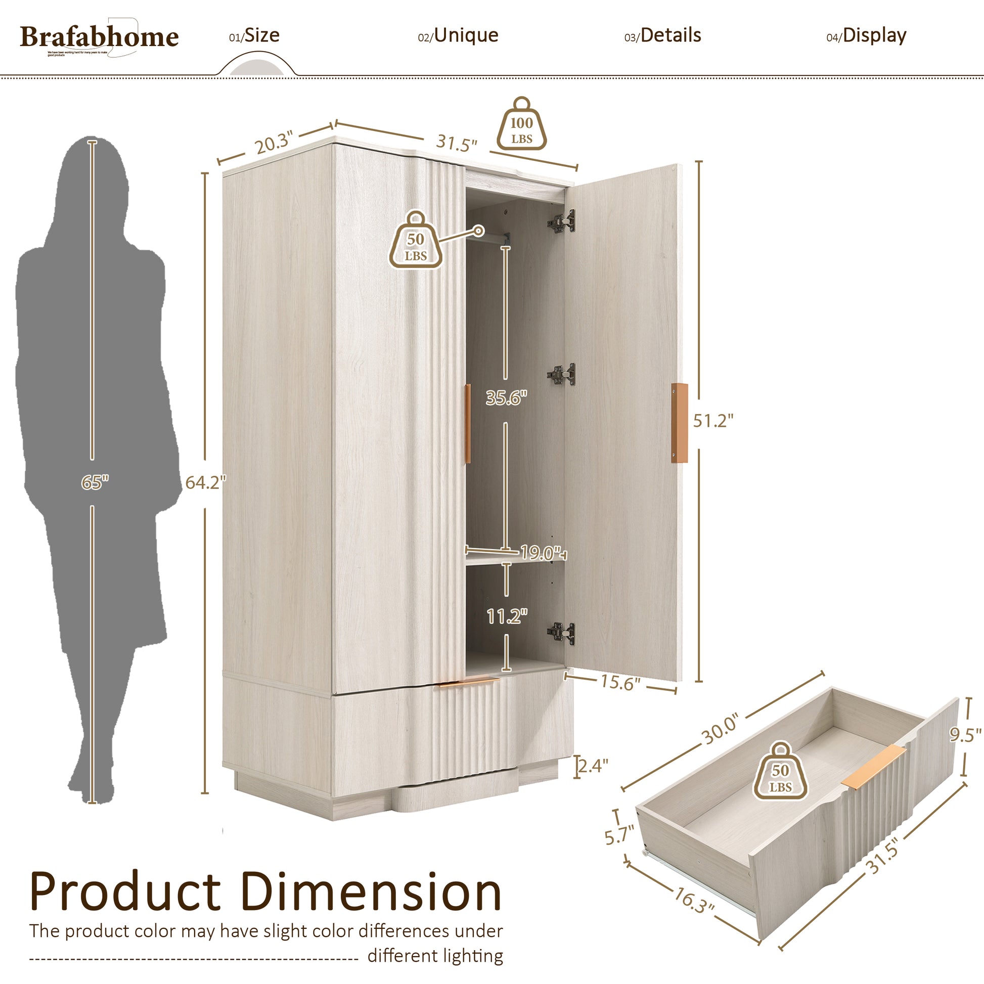 Brafabhome 64" Fluted Armoire Wardrobe Closet with Drawer, Wooden Fluted Doors Wardrobe Cabinet with Adjustable Shelf for Bedroom