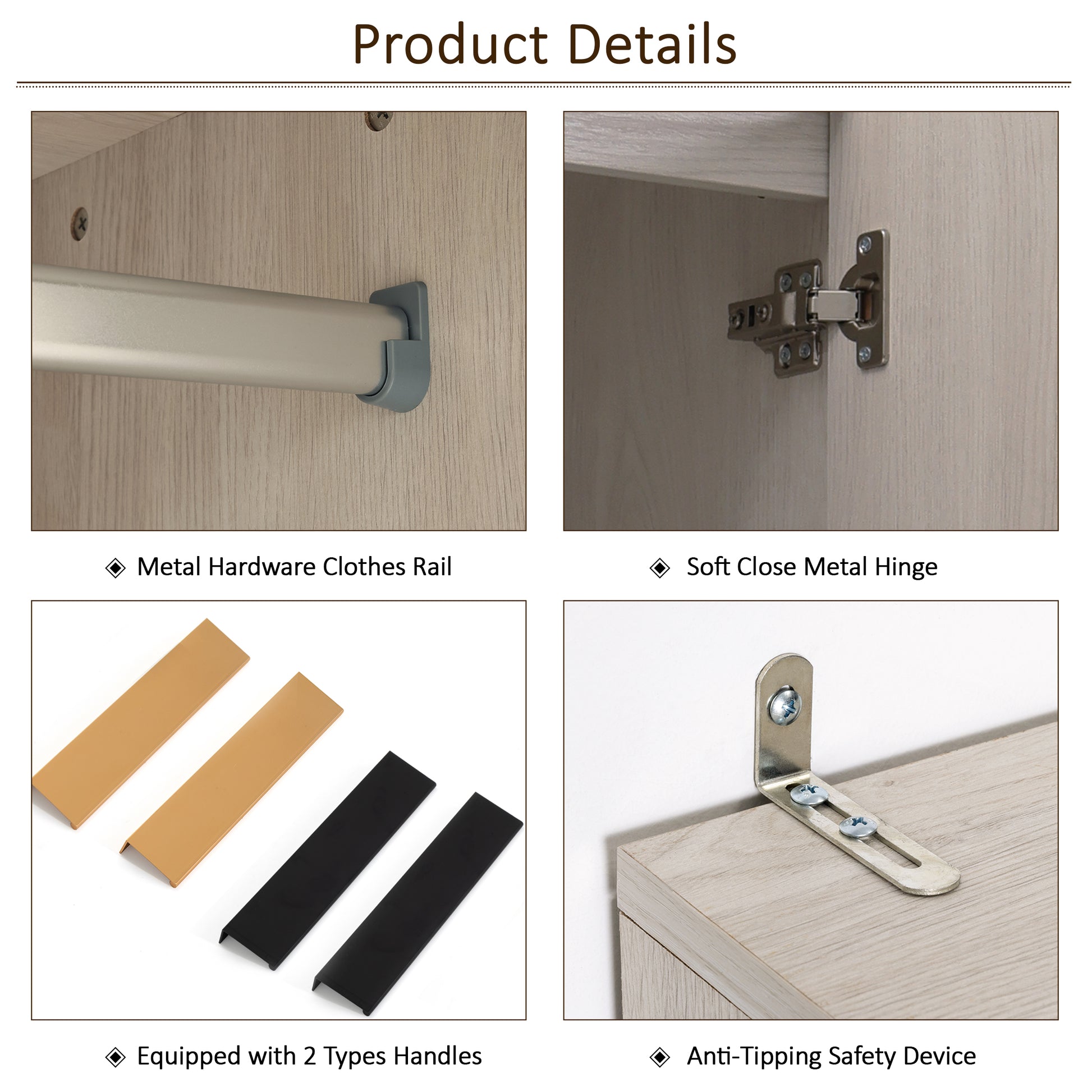 - 【Safety Anti-Tipping Device】Rest easy with our included anti-tipping device. Simple to install, it keeps your wardrobe secure and prevents accidents, especially important in homes with kids or pets.