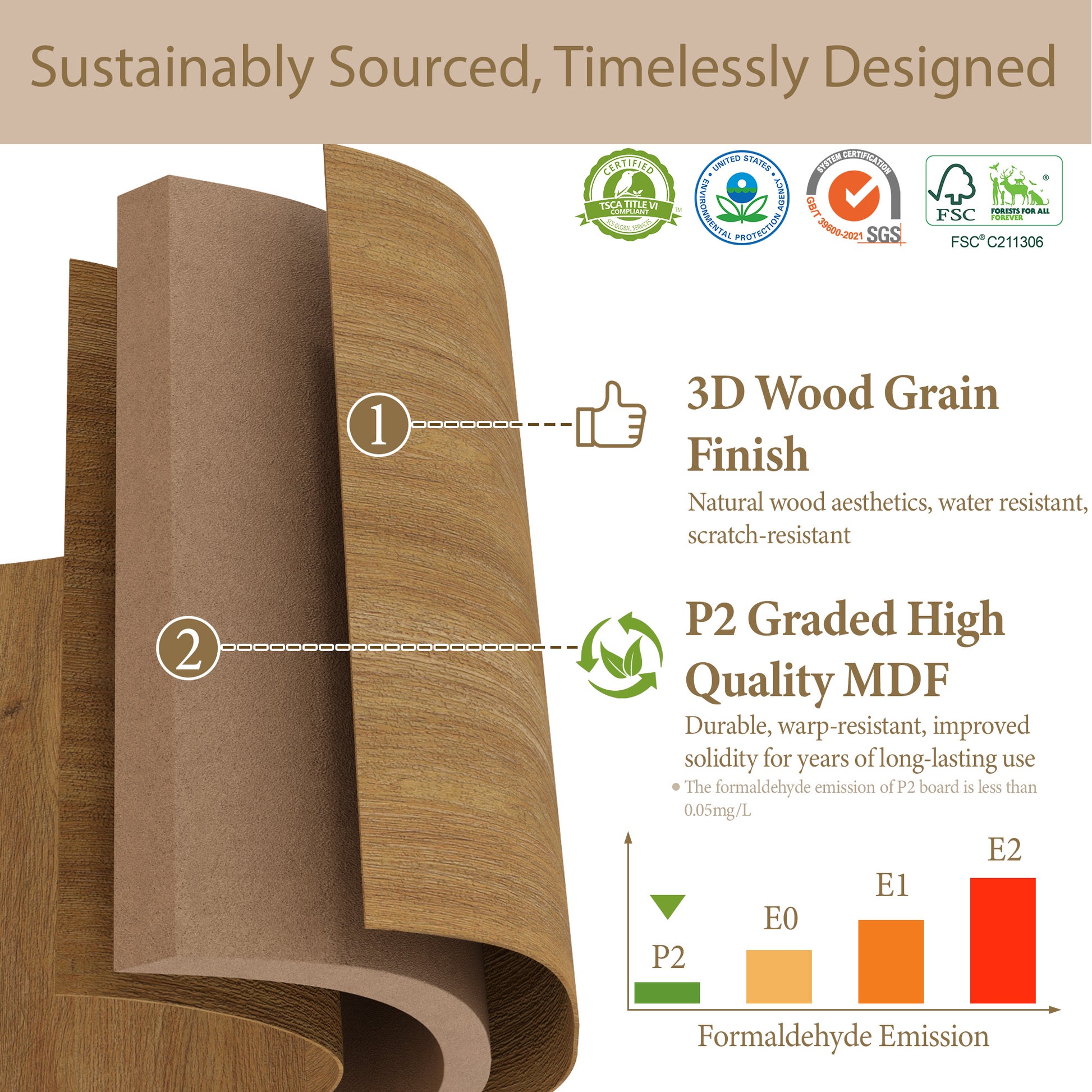 - 【Premium P2-Grade Wood】Crafted with P2-grade wood for superior durability and a safer indoor environment. The elegant 3D handcrafted veneer delivers a natural wood texture that elevates any space.